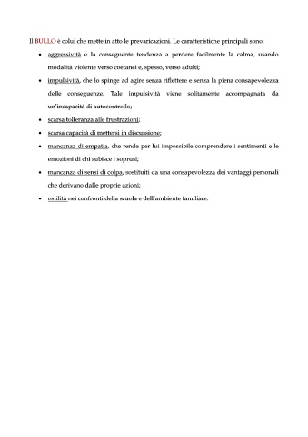Il BULLO è colui che mette in atto le prevaricazioni. Le caratteristiche principali sono: