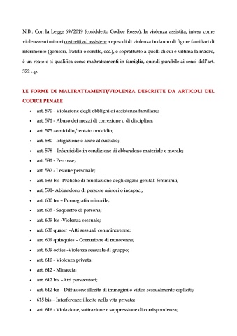 N.B.: Con la Legge 69/2019 (cosiddetto Codice Rosso), la violenza assistita, intesa come