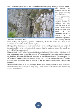 Today the road is open to visitors, and it can be hiked all the way long, walking through the tunnels,