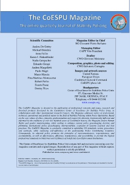 “The CoESPU Magazine – the on line Quarterly Journal of Stability Policing” is a stand-alone on line publication. Printed copies are intended for internal