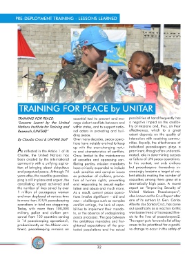 TRAINING FOR PEACE: essential tool to prevent and ma- possibilities at hand frequently has
