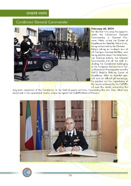 welcomed in the ceremonial rooms, where he signed the CoESPU Book of Honour.
