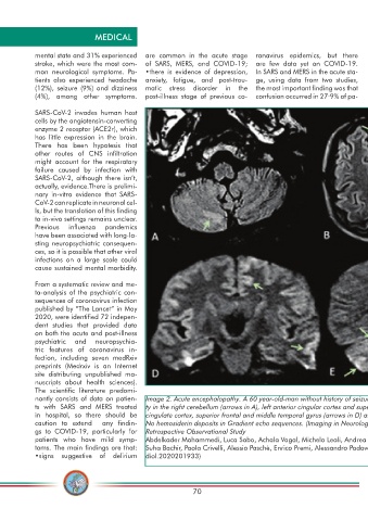 mon neurological symptoms. Pa- •there is evidence of depression, In SARS and MERS in the acute sta-