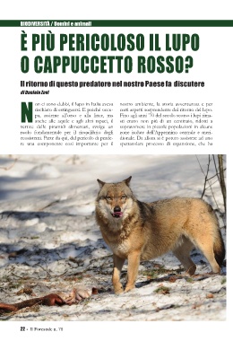 rischiato di estinguersi. E poiché occu- certi aspetti sorprendente del ritorno del lupo.