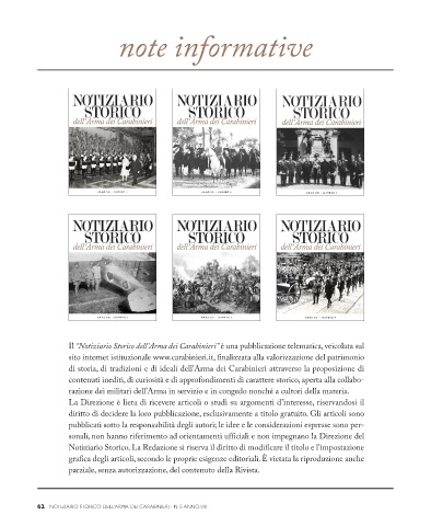 62 NOTIZIARIO STORICO DELL’ARMA DEI CARABINIERI - N. 5 ANNO VIII