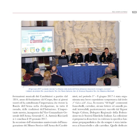 26 gennaio 2017. La tavola rotonda “La Musica nella storia dell’Arma attraverso documenti, immagini, memorie”.