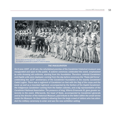On 6 June 1937, at 10 am, the refurbished premise of the Carabinieri historical museum was