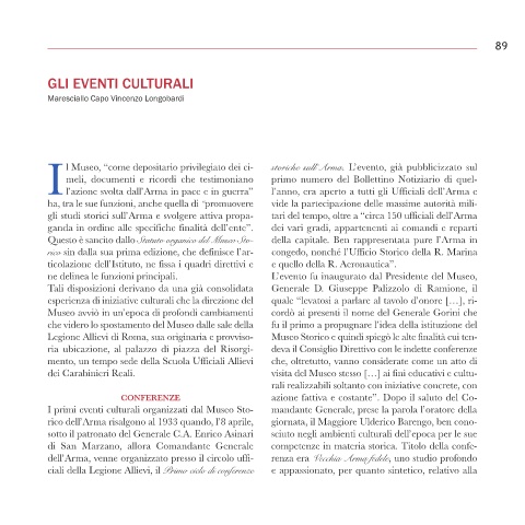 I primi eventi culturali organizzati dal Museo Sto- mandante Generale, prese la parola l’oratore della