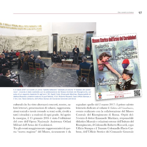 Tra gli eventi maggiormente rappresentativi di que- Ufficio Stampa e il Tenente Colonnello Flavio Car-
