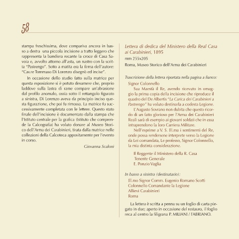 stampa freschissima, dove compariva ancora in bas- Lettera di dedica del Ministero della Real Casa