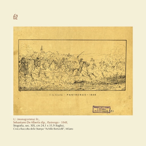 62 U. (monogramma) lit., Sebastiano De Albertis dip., Pastrengo - 1848, litografia, sec. XIX, cm 24,1 x 31,9 (foglio), Civica Raccolta delle Stampe “Achille Bertarelli”, Milano