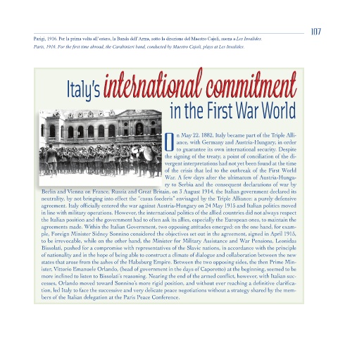 Paris, 1916. For the first time abroad, the Carabinieri band, conducted by Maestro Cajoli, plays at Les Invalides.