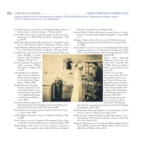 Lucio Fabi, Grande Guerra e fotografia. Appunti su fonti, ricerche, in- mazione del mondo mentale, Bollati Boringhieri, Torino, 2007,