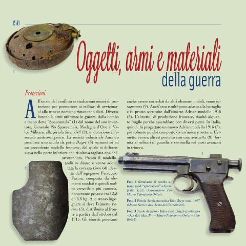 A furono le armi utilizzate in guerra, dalla bomba (6). L’elmetto, di produzione francese, risultò alquan-