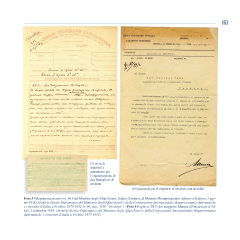 e consolari d’Italia a Pechino 1870-1952, b. 94, fasc. 1190 “Irredenti”) - Foto 4 Foglio n. 2033 del maggiore Manera all’incaricato d’Af-