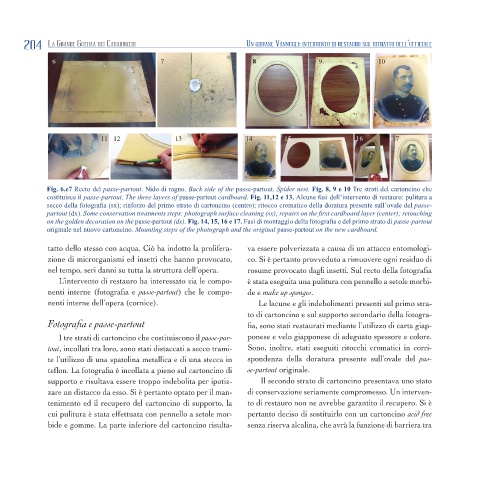 costituisce il passe-partout. The three layers of passe-partout cardboard. Fig. 11,12 e 13. Alcune fasi dell’intervento di restauro: pulitura a
