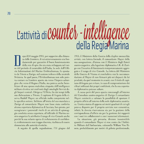 78 78 La Grande Gueraa dei Carabinieri L’attività di counter-inteLLigence deLLa regia Marina