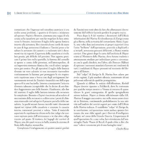 84 La Grande Gueraa dei Carabinieri L’attività di counter-inteLLigence deLLa regia Marina
