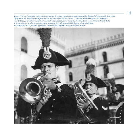 Roma, 1956. La fotografia, realizzata in occasione del primo viaggio intercontinentale della Banda dell’Arma negli Stati Uniti,