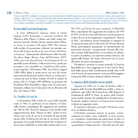 vera e propria, una fanfara e una batteria tamburi. I tre elementi costituiscono la musica della Guardia Repubblicana (foto Delpat Gend).