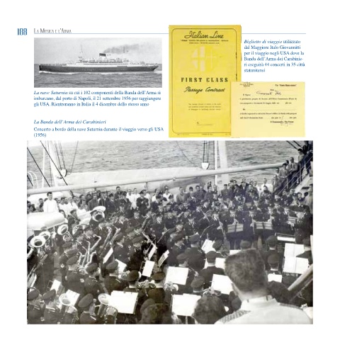 La nave Saturnia su cui i 102 componenti della Banda dell’Arma si