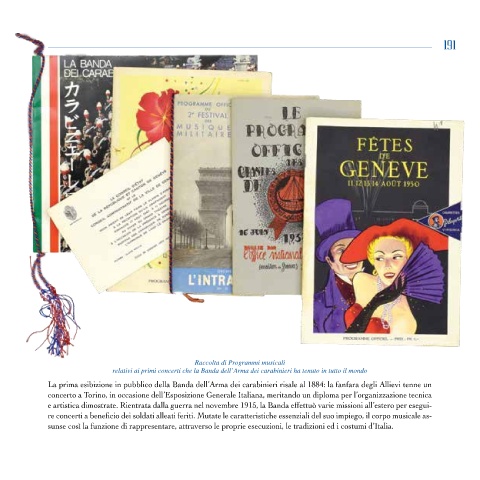 relativi ai primi concerti che la Banda dell’Arma dei carabinieri ha tenuto in tutto il mondo