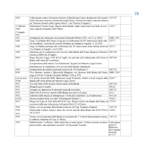 1935 Pubblicazione “La Banda - dalle origini fino ai nostri giorni – Notizie storiche con docu- Collocazione