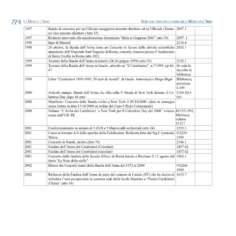 2002 Elenco dei Concerti tenuti dalla Banda dell’Arma dal 1972 al 2000 9/2264-