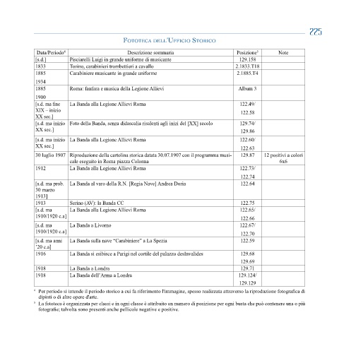 5 La fototeca è organizzata per classi e in ogni classe è attribuito un numero di posizione per ogni busta che può contenere una o più