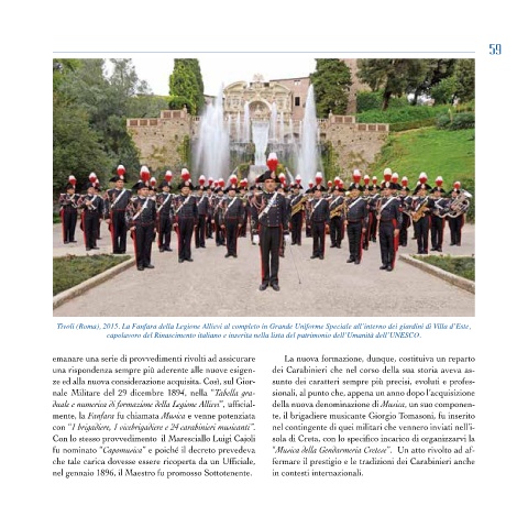 Tivoli (Roma), 2015. La Fanfara della Legione Allievi al completo in Grande Uniforme Speciale all’interno dei giardini di Villa d’Este,