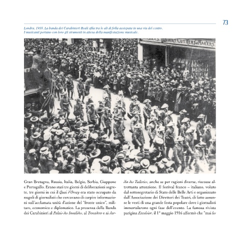 Londra, 1918. La banda dei Carabinieri Reali sfila tra le ali di folla assiepata in una via del centro.