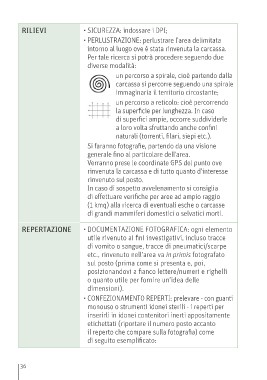 etc., rinvenuto nell’area va in primis fotografato atipiche, etc.), etichettare e poi spostare la carcassa,