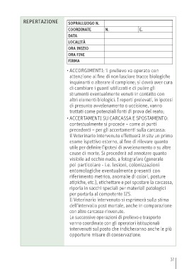 etc., rinvenuto nell’area va in primis fotografato atipiche, etc.), etichettare e poi spostare la carcassa,