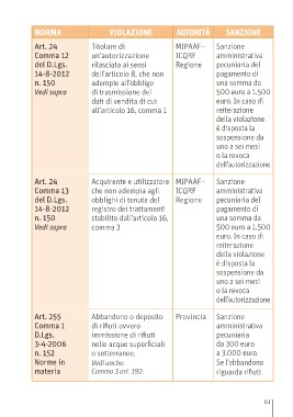 NORMA VIOLAZIONE AUTORITÀ SANZIONE NORMA VIOLAZIONE AUTORITÀ SANZIONE