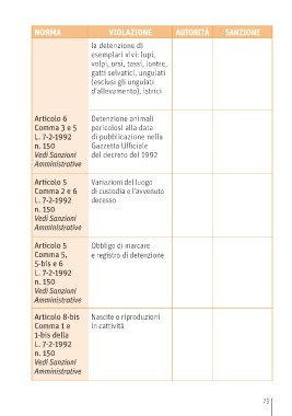 specie animali di specie selvatica n. 231 (Disciplina Vedi Sanzioni