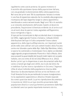 1.2 Distribuzione della specie in Italia ricomparsa del lupo dapprima lungo la catena appenninica