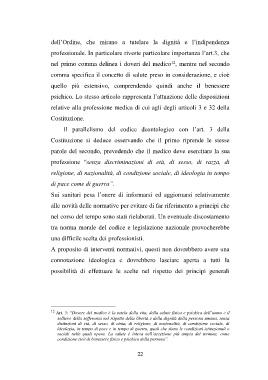 12 Art. 3: “Dovere del medico è la tutela della vita, della salute fisica e psichica dell’uomo e il