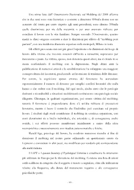 lavoro. I risultati degli studi considerano il mobbing in continua espansione, con