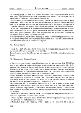 Il funzionamento del sito secondario remoto della BDN-DNA è descritto in uno o più