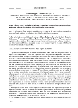 Art. 1. Istituzione delle sezioni specializzate in materia di immigrazione, protezione