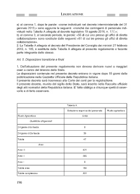 collaborazione» sono sostituite dalle seguenti «61 di cui tre presso gli uffici di diretta