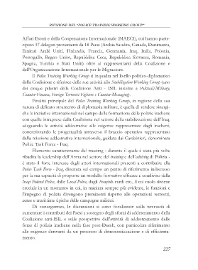 Il Police Training Working Group si inquadra nel livello politico-diplomatico