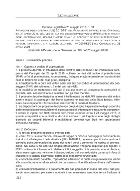 peo e del Consiglio del 27 aprile 2016, sull’uso dei dati del codice di prenotazione