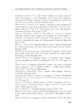 NOTA BIBLIOGRAFICA SULLA PRIGIONIA DURANTE LA GRANDE GUERRA