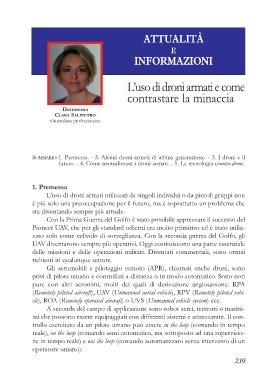 SOMMARIO:1. Premessa. - 2. Alcuni droni armati di ultima generazione. - 3. I droni e il