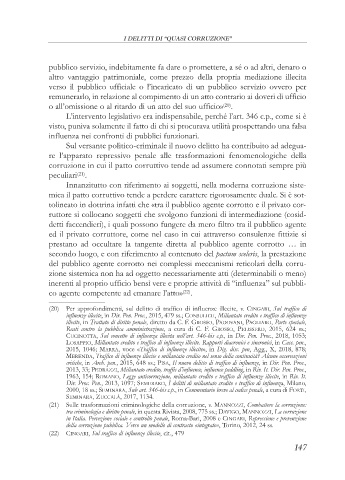 critiche, in Arch. pen., 2015, 648 ss.; PISA, Il nuovo delitto di traffico di influenze, in Dir. Pen. Proc.,