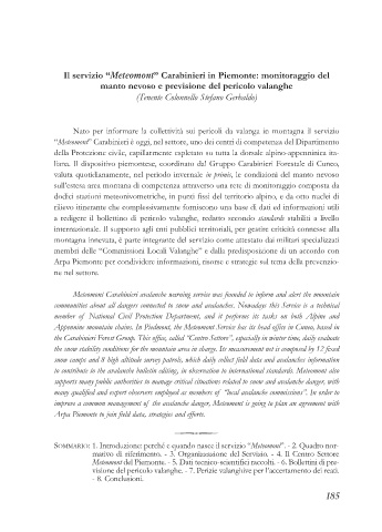 Meteomont del Piemonte. - 5. Dati tecnico-scientifici raccolti. - 6. Bollettini di pre-