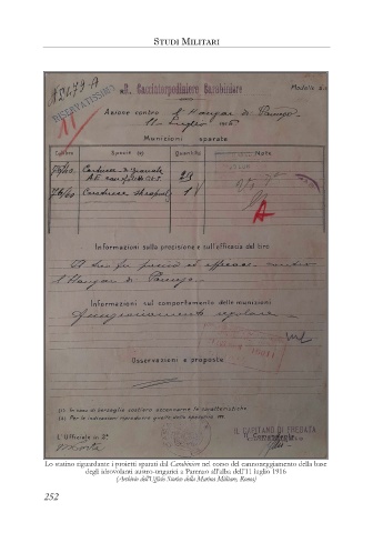 Lo statino riguardante i proietti sparati dal Carabiniere nel corso del cannoneggiamento della base