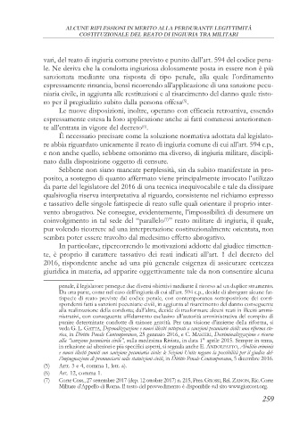COSTITUZIONALE DEL REATO DI INGIURIA TRA MILITARI