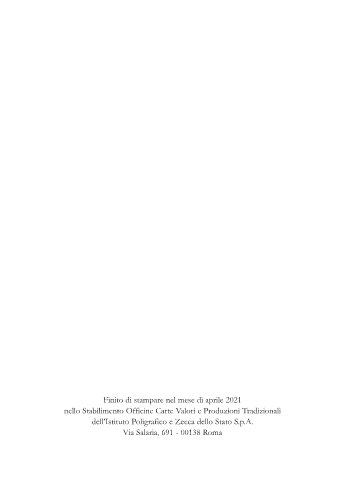 Finito di stampare nel mese di aprile 2021 nello Stabilimento Officine Carte Valori e Produzioni Tradizionali dell’Istituto Poligrafico e Zecca dello Stato S.p.A. Via Salaria, 691 - 00138 Roma 30